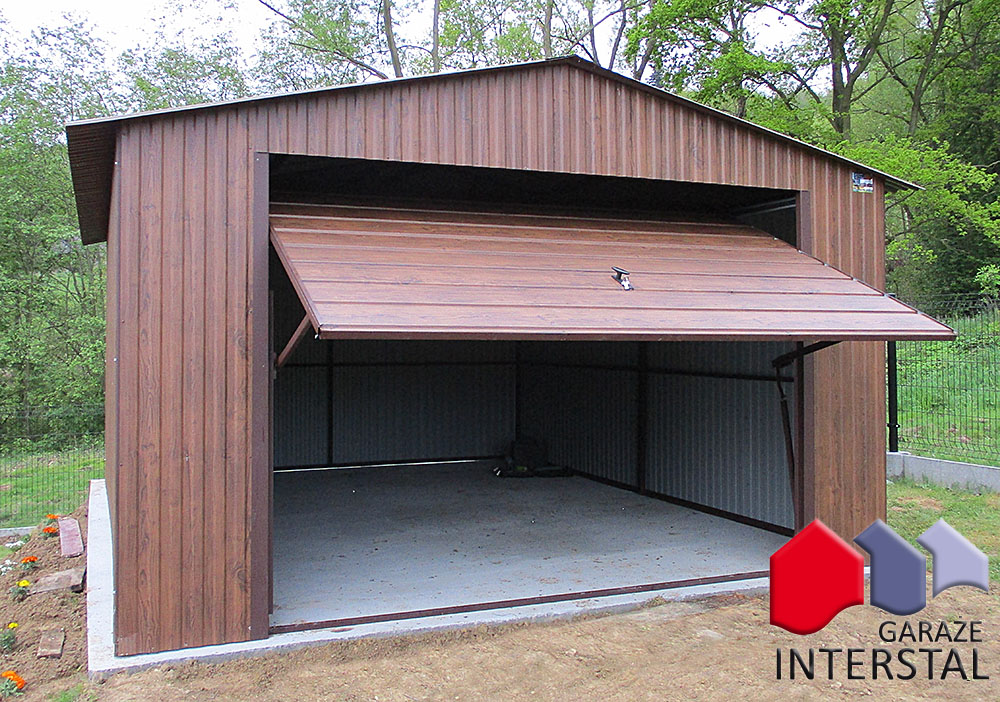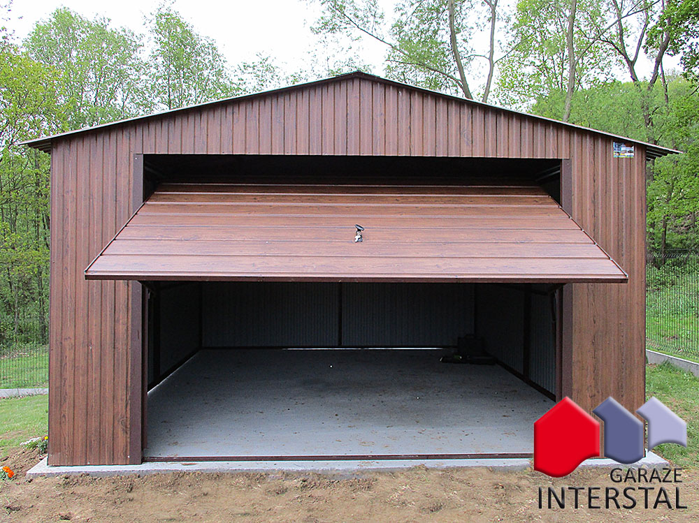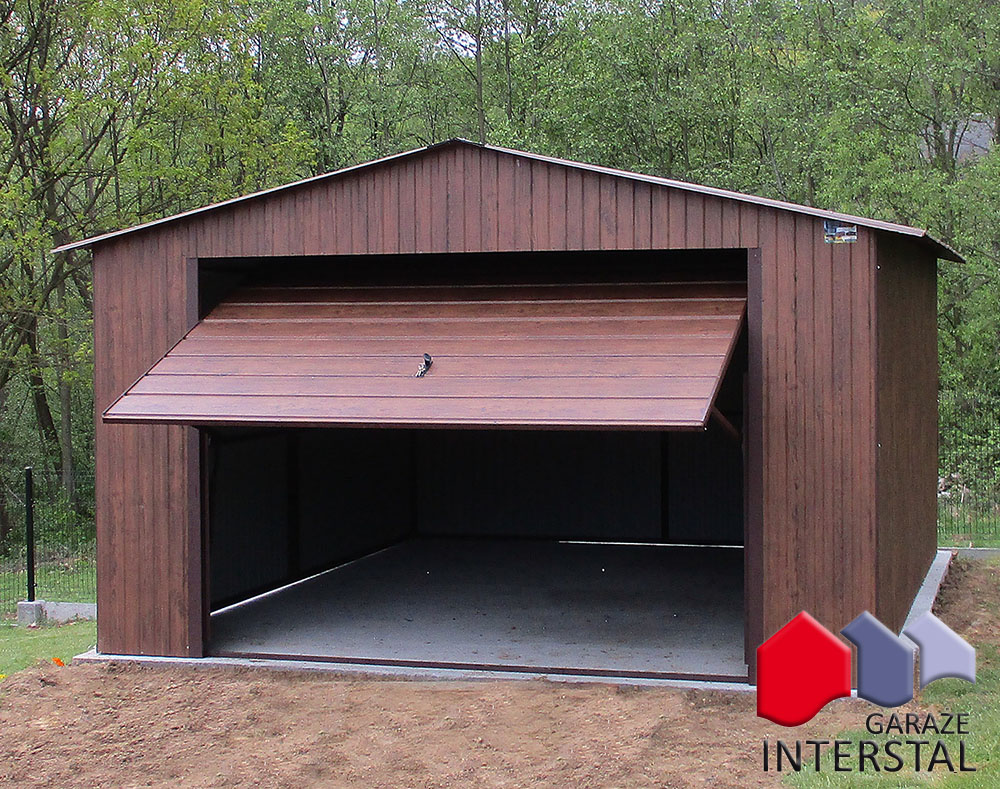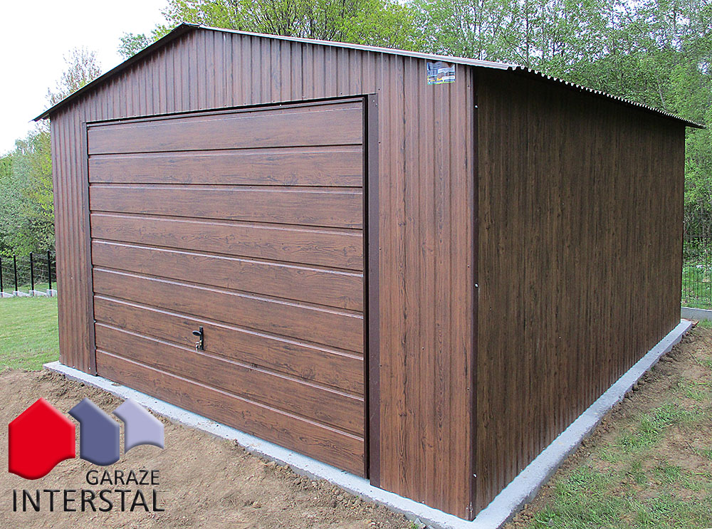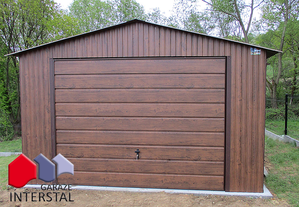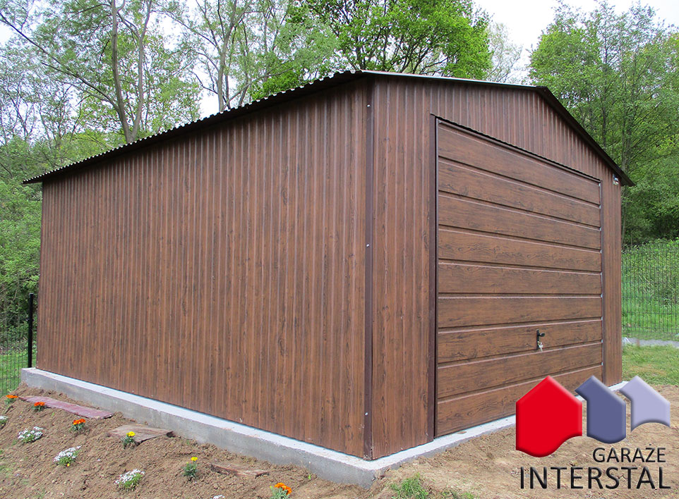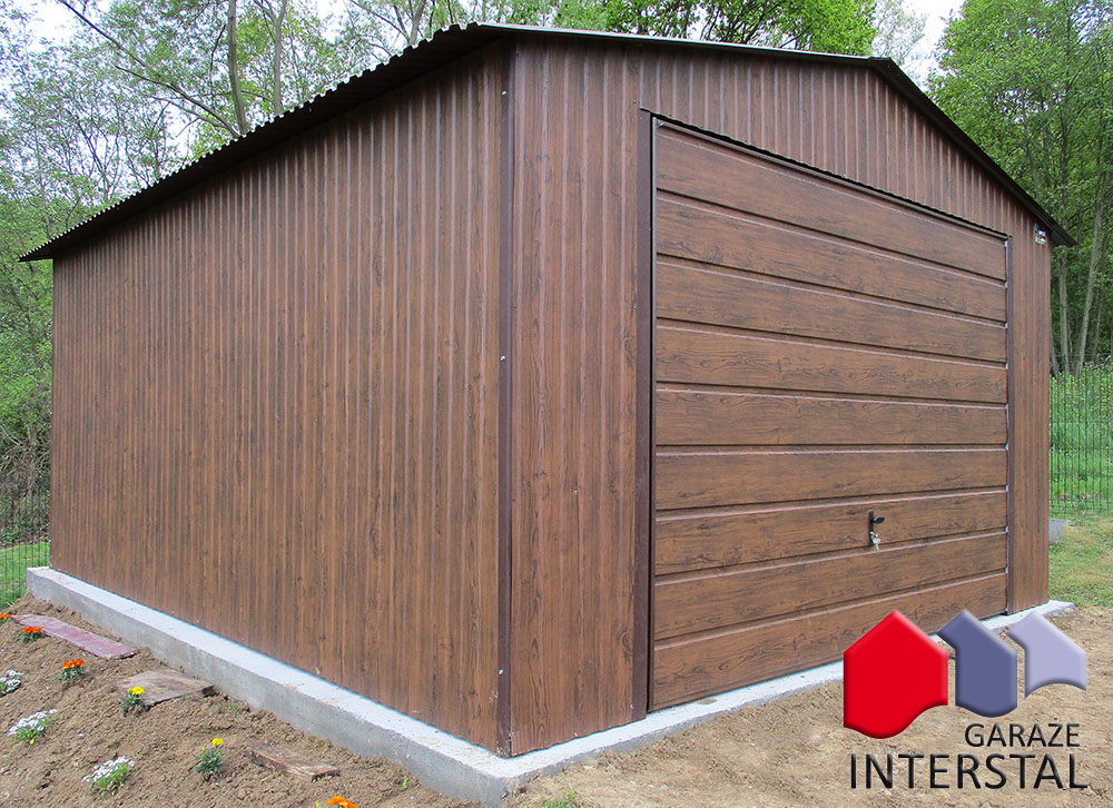 - Garaż może być wykonany w dowolnym kolorze z palety RAL, blachy drewnopodobnej Złoty Dąb.