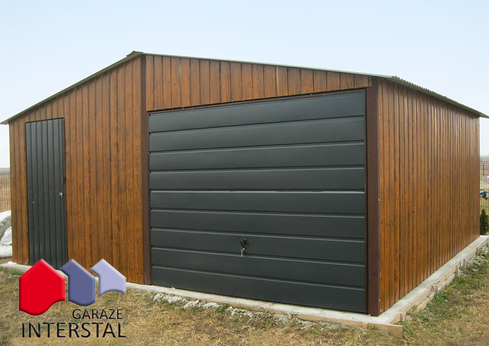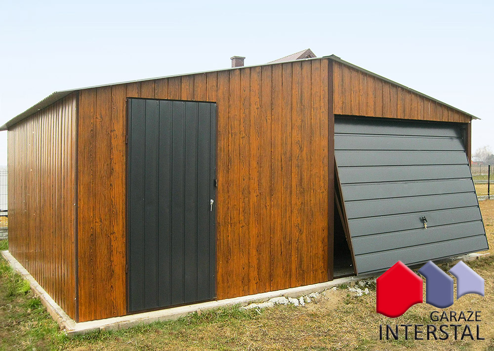 Napisz pierwszą opinię o „Garaż blaszany 5x6 drewnopodobny orzech i grafit szeroki panel”